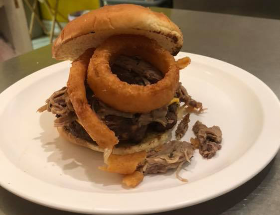 Slow smoked beef brisket sandwiches, platters served at the restaurant and food truck are very popular.